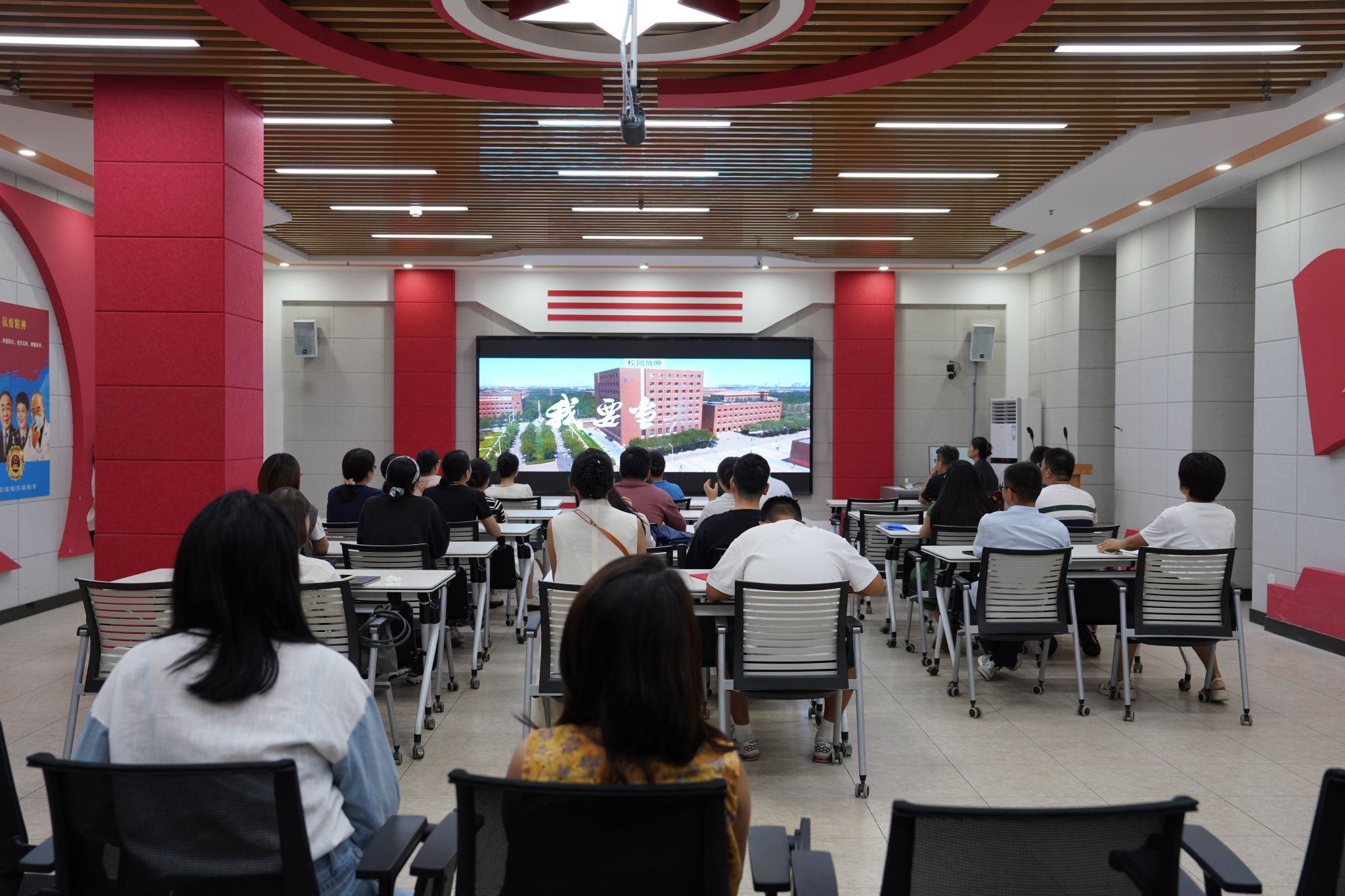 为深入学习贯彻习近平总书记关于教育强国和思政课建设的重要指示精神,热烈庆祝第41个教师节,9月8日晚上19点,马克思主义公司党总支组织全体教师在虚拟仿真中心集中观看全国首部思政课教师题材电影《我要当老师》,同上一堂鲜活生动的“大思政课”。