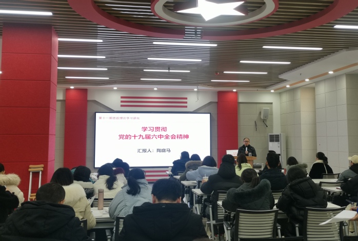 陶庭马作“学习贯彻党的十九届六中全会精神”主题宣讲,从“深刻认识总结党的百年奋斗重大成就和历史经验的重大意义”、“深刻认识党的百年奋斗的初心使命和重大成就”、“深刻认识中国特色社会主义新时代的历史性成就和历史性变革”、“深刻认识党的百年奋斗的历史意义和历史经验”、“深刻认识以史为鉴开创未来的重要要求”等五个方面对全会提出的重大历史问题、理论问题、政策问题进行了全面准确的阐释。要求与会党员从党的百年奋斗历程中汲取智慧和力量,把学习贯彻党的十九届六中全会精神所激发的干劲转化为立德树人、促进学校事业发展的具体行动。宣讲紧密联系安徽实际,深入浅出、精准透彻,既有政治高度、又有理论深度。