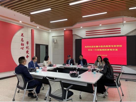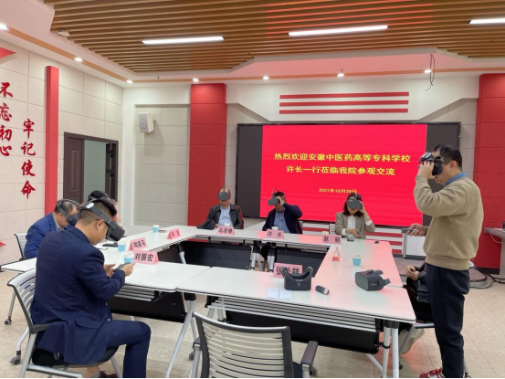 10月29日下午,安徽中医药高等专科学校宣传部部长许长、思政部主任马凌锋一行来公司思政课实践教学虚拟仿真中心参观交流。宣传部常务副部长邹莹、44118太阳成城集团副经理陶庭马,以及部分思政课教师热情接待了来访客人并进行座谈交流。