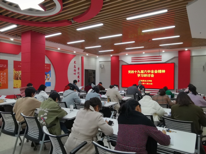 与会同志展开了热烈的理论研讨。各教研室结合学科特点,分别作“坚定捍卫‘两个确立‘ ,坚决做到‘两个维护’”、“再聚精神力量,继续奋斗前行”、“回顾历史,总结经验,开创未来”、“学习中央宣讲团宣讲党的十九届六中全会精神有感”等主题发言。其他参会教师也纷纷发表了学习党的十九届六中全会精神的体会,讨论了如何落实党的十九届六中全会精神“三进”工作。