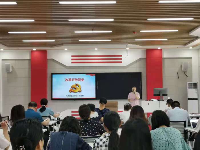 党支部组织委员邓会敏作“改革开放简史”党课报告,她紧紧围绕习近平总书记“七一”讲话精神,深度诠释“坚持中国特色社会主义道路”的鲜明主题,系统回顾了中国改革开放的历史背景、探索过程、伟大成就和经验启示。真实的历史事件、生动的鲜活事例,精辟的理论分析、让与会同志深刻认识到只有中国共产党才能从中国人民的根本利益出发,以强烈的责任心和使命感,带领中国人民不断攻坚克难,不断创造辉煌,实现伟大复兴。