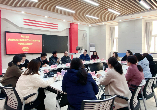 安徽信息工程学院汪一江教授一行对公司的热情接待表示感谢,认为公司团队建设、教学改革、教学研究、科学研究、社会服务等方面取得的成绩给他们留下深刻印象。大家一致认为,学院之间积极开展调研交流活动有利于提高双方学校思想政治理论课建设水平,希望今后双方加强联系,巩固友谊,进一步开展合作。