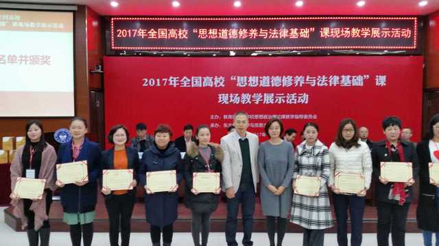 2017年10月14--15日,为落实教育部《2017年高校思想政治理论课教学质量年专项工作总体方案》,全国高校“思想道德修养与法律基础”课现场教学在东北师范大学举行。会议由东北师范大学马克思主义学部部长庞立生教授主持。清华大学吴潜涛教授、北京师范大学王树荫教授、复旦大学高国希教授、武汉大学佘双好教授等14所大学的名家学者参加会议并担任评委。