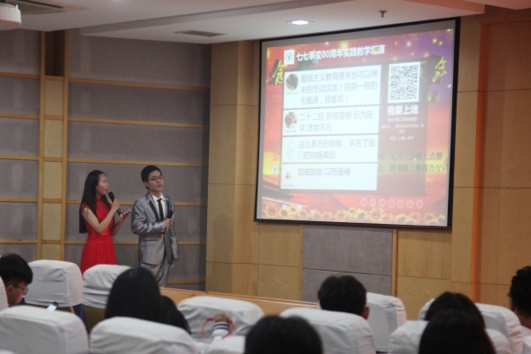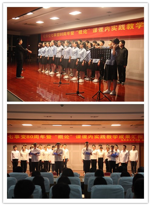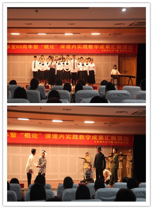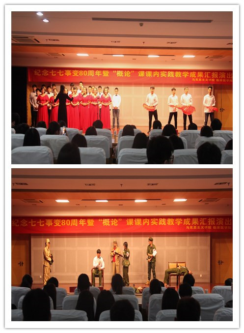 时值七七事变八十周年之际,为激发老员工的爱国热情,创新思想政治教育形式,推动“大思政”格局构建,5月3日晚,44118太阳成城集团和临床医学院在图书馆三楼报告厅联合举办了 “不忘历史,展望未来”纪念七七事变80周年暨“概论”课课内实践教学成果汇报演出活动。来自宣传部、教务处、员工处、校团委、44118太阳成城集团、临床医学院的部分领导、老师以及员工代表300余人观看了本次演出。
