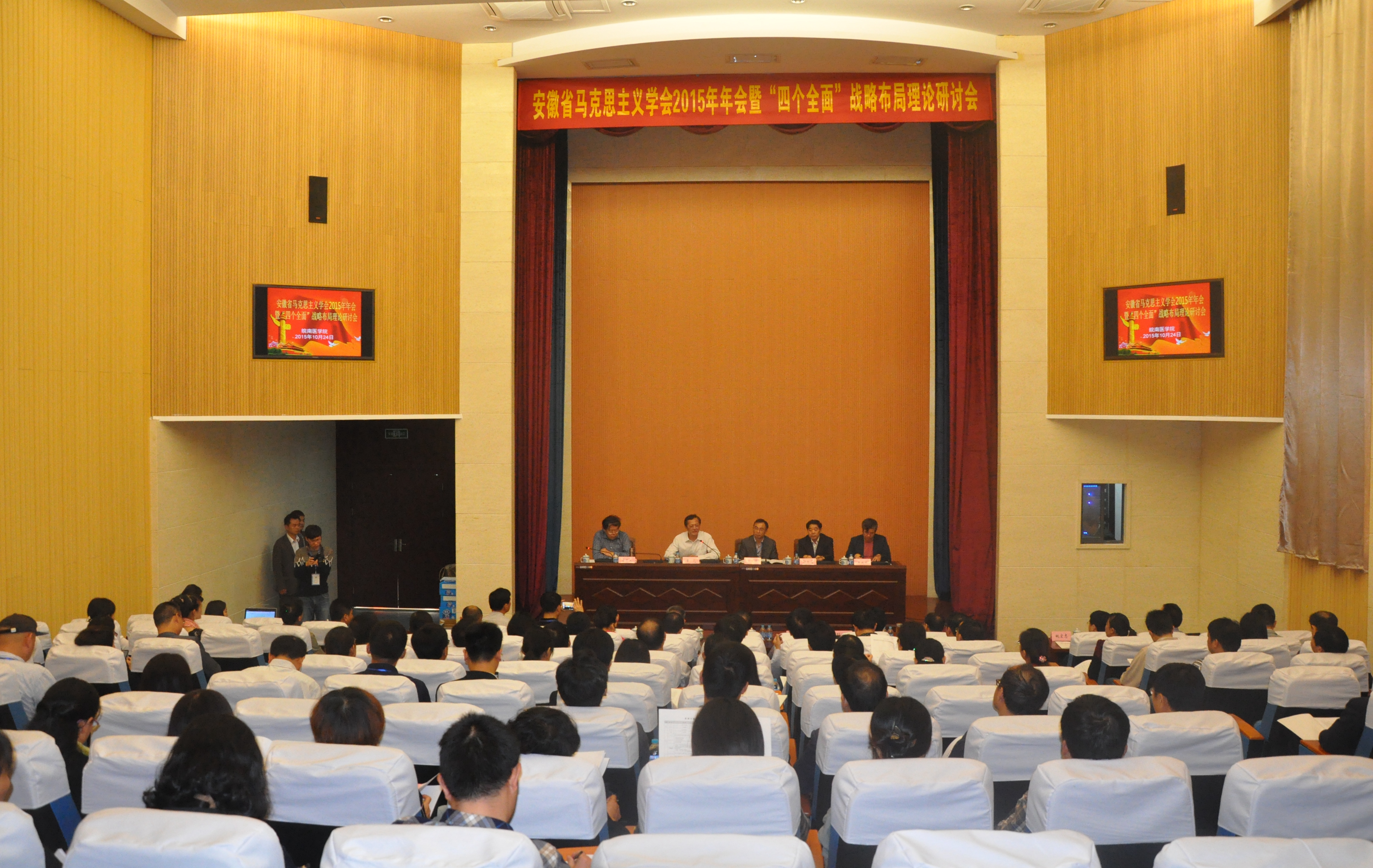 10月23日—24日,安徽省马克思主义学会2015年年会暨“四个全面”战略布局理论研讨会在皖南医学院召开,思政部全体教师全力配合学校做好大会筹办工作,在会议期间认真聆听了安徽省社科院邸乘光研究员、陆军军官学院鲁世山教授、安徽师范大学汪盛玉老师等专家学者的精彩报告,积极参与学术研讨和交流,思政部郭玉琼老师代表皖南医学院作学术交流发言。会上增补王军为该学会常务理事。