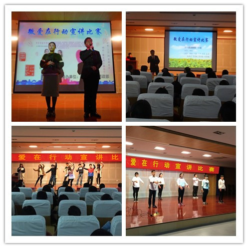 为创新思政理论课校内实践教学的崭新理念和模式,拓展老员工的实践动手能力、调研开发潜力、综合展现能力,提升其思政教育水平和人文道德素养,3月24日晚,思政部与临床医学院在图书馆三楼报告厅联手举办 “微爱在行动” 实践教学宣讲比赛。本次大赛由思想道德修养与法律基础教研室组织,邀请思政部、临床医学院领导、老师和部分员工干部担任评委,临床医学院2015级近400名员工到场观摩、学习。该活动由思想道德修养与法律基础教研室主任黄英主持。
