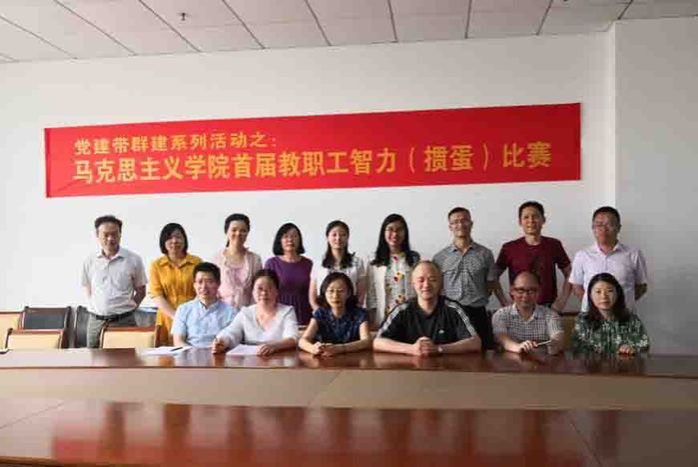 在学期即将结束之际,为落实“党建带群建、群建促党建工作丰富教职工的精神文化生活,营造积极向上、健康和谐的文化氛围,625日下午,马克思主义公司党支部举办了首届教职工“智力(掼蛋)”比赛。