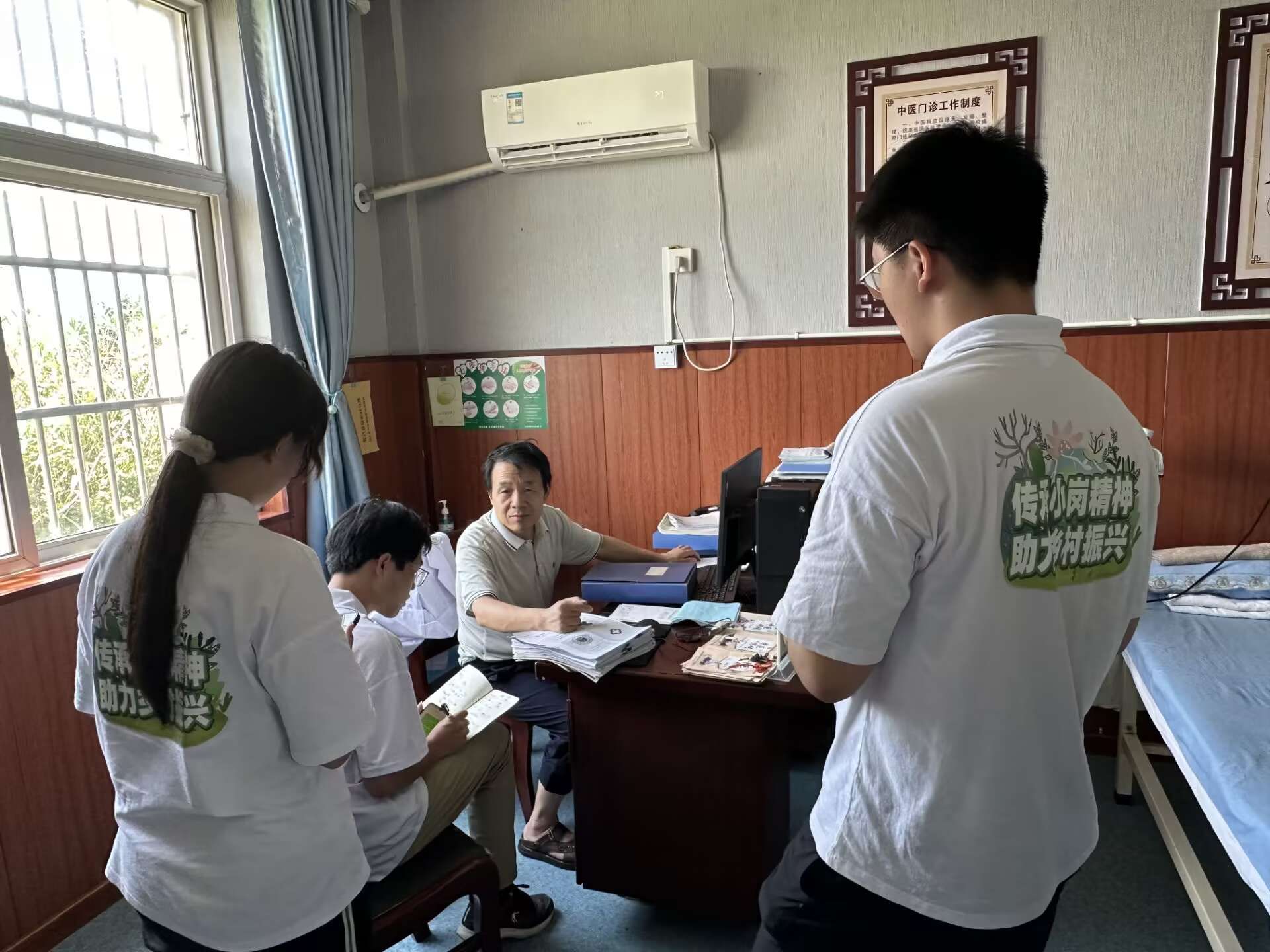 实践团来到小溪河镇中心卫生院小岗村分院,开展访谈调研。在采访中,小岗村卫生院经理肖玉艳表示,卫生室虽然只有3名村医,但他们每天都会挨家挨户地走访村民,双脚奔走在田间地头,了解村民的健康状况,宣传健康知识,履行党员的责任和义务。站长张常永认为,随着乡村振兴战略的深入实施,乡村医疗卫生事业将迎来新的发展机遇,希望在国家政策的支持下,进一步提升小岗村的医疗卫生服务水平。中医师杨虎见证了小岗村医疗卫生的巨大变化,从最初简陋的卫生室到现在设备齐全的乡镇卫生院,在他看来,中医承载千年智慧,遵循自然法则,融合阴阳五行,一针一砭,一药一汤,普惠众生,对未来中医药发展充满热忱和期盼。护士代连妹是无数乡村医生的缩影,言语中充满对于扎根基层医疗卫生事业的热情。