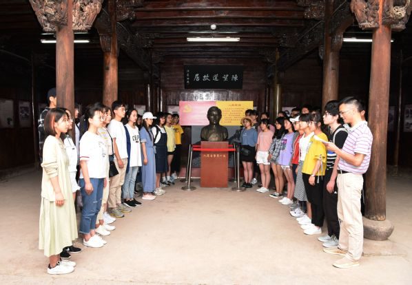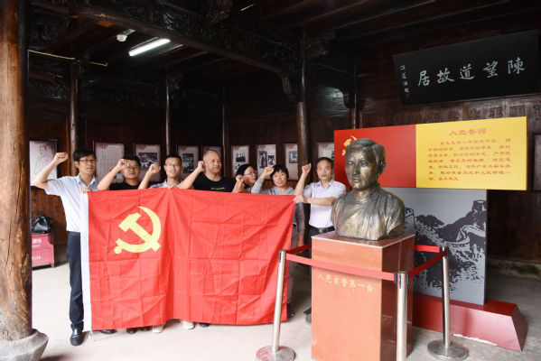本次社会实践活动由马克思主义基本原理概论教研室和医学伦理学教研室联合主办,围绕的核心主题是“重温信仰的味道”。首站参观了陈望道故居。陈望道先生是著名的思想家、社会活动家、教育家、语言学家,著名的马克思主义传播者和中国共产党早期活动家,1920年翻译了《共产党宣言》,这是《共产党宣言》第一个中文全译本。在陈望道故居,师生们参观学习了陈望道先生的生平事迹、照片和珍贵藏品。在其塑像前,学院经理王军带领教师们重温入党誓词,马原教研室副主任郭超带领员工集体诵读《共产党宣言》经典片段,共同唤起对信仰的追随。通过瞻仰事迹,大家重温了历史,感受到了陈望道先生对于理想信念的执着追求,宣传和传播了马克思主义的精神。