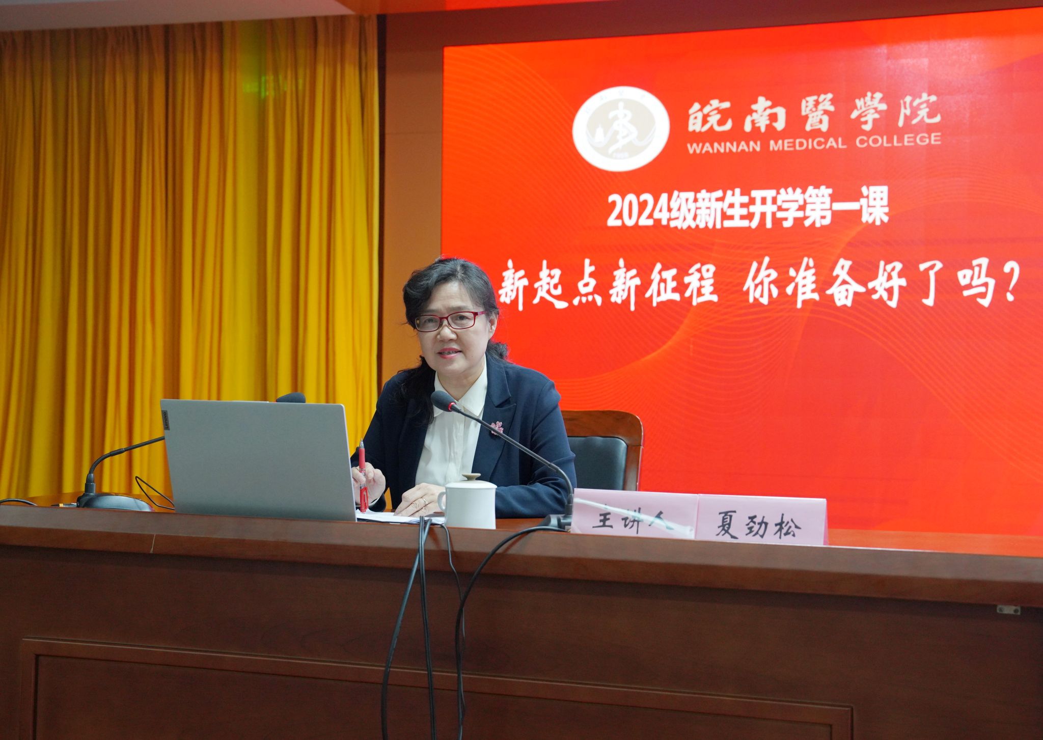 10月31日,党委书记夏劲松以“新起点 新征程 你准备好了吗”为题,为2024级3000余名本科员工讲授了一堂富有思想性和亲和力的“开学第一课”。她为同学们讲述了皖医及皖医人的故事,寄语新生秉承“精医、尚德、求实、自强”的校训,发扬“艰苦创业、求实自强、奉献社会”的皖医精神,博极医源、精勤不倦,用奋斗点亮青春活力,用奉献擦亮青春底色,努力成长为优雅文明、敢于担当、乐于奉献的优秀老员工。期望同学们怀揣“和皖医一起创造历史”的梦想,与皖医的发展同频共振、共同创造未来。