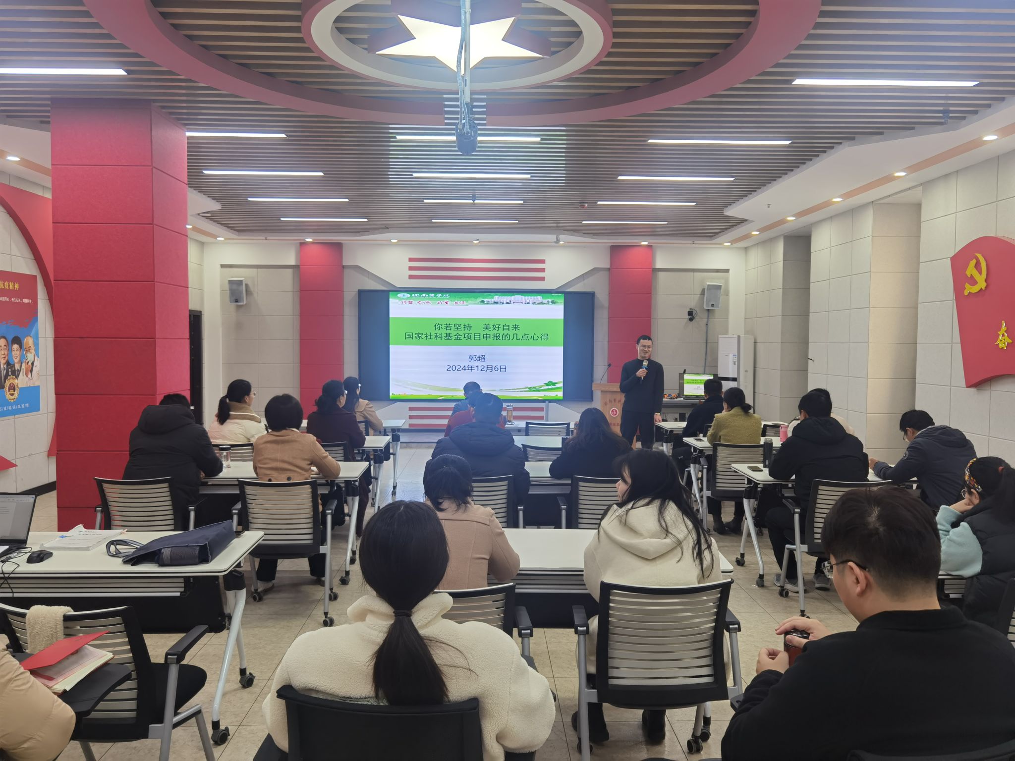 为进一步推进2025年度国家社科基金项目申报工作,提升教师国家社科基金项目申报书质量,12月6日上午,44118太阳成城集团邀请安徽师范大学44118太阳成城集团副教授郭超来校开展国家社科基金项目申报辅导讲座,讲座由44118太阳成城集团经理陶庭马主持。